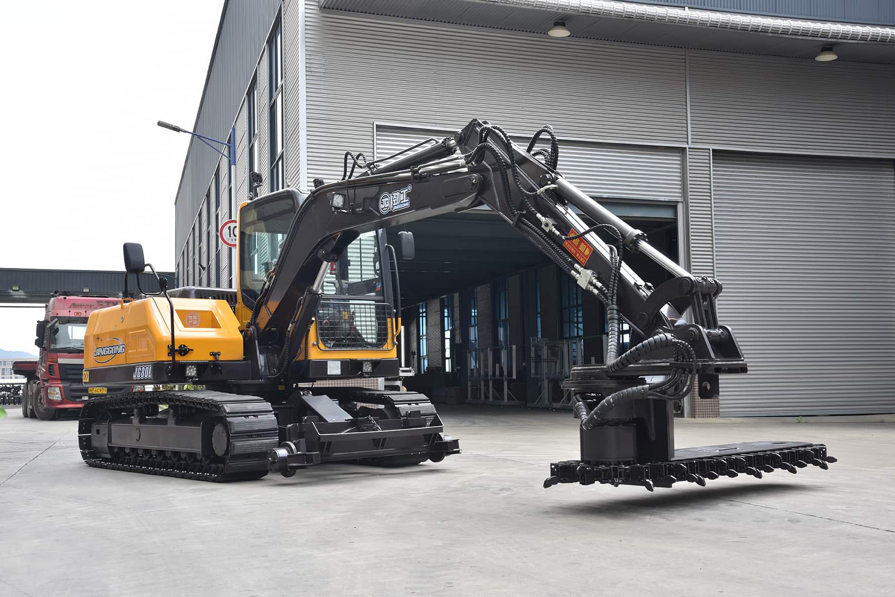 JG80LT 8-Ton Railway Ballast Regulator & Hirail Excavator.Specially designed for efficient track maintenance, integrated ballast finishing and rail overhaul functions. The 8-ton working capacity is adapted to the global standard gauge, and the hydraulic system accurately controls the distribution of ballast to strengthen the stability of the track foundation. Multi-joint manipulator to achieve 360° flexible operation, equipped with replaceable fittings, easy to complete slope shaping, sleepers clear ballast and rail positioning. It conforms to ISO safety certification, ADAPTS to complex working conditions such as high temperature and cold, greatly reduces manual maintenance costs, and improves railway operation and maintenance efficiency by more than 30%.